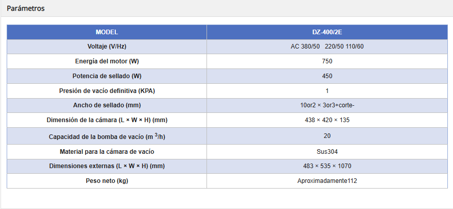 Máquina con sellador de 1000W y cámara robusta para envasado industrial